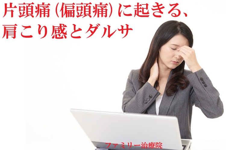 この為、「病気ではないけれど、何となく身体の調子が悪い」と感じ、それに伴って、独特な不快感を伴う肩こり感やダルサが起きてくる場合は、片頭痛の“前触れ”が考えられます。