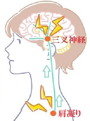 しかも、脳の血管を取り巻いて片頭痛を発生させる『三叉(さんさ)神経』は、後頭部に伸びている神経(大後頭神経)と至近距離で交わっているので、この後頭部に伸びている神経から影響を受けます。