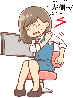 また、フルに右手が使えるように、作業する時、左側の手で、物を固定したり、動かないように持ち続けたりする事が多いので、左側の肩や首の筋肉に力が入って血流が悪くなり易い事や、あるいは、右側の手(利き手)がフルに使えるように、左側に重心を置くので、左側の肩や首の筋肉に負担が大きくなる事などが、理由として考えられています。