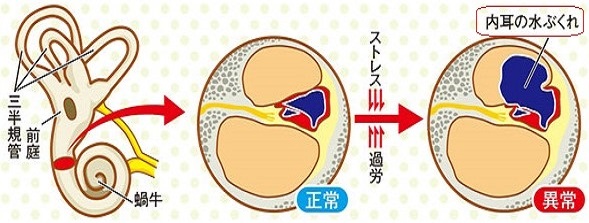 これは、耳の奥を流れているリンパ液が極めて微量で、しかも、微妙なリンパ液の産生と吸収で調節されているので、ストレス、睡眠不足、疲労などでリンパ液の調節が崩れると、リンパ液の流れが悪くなって耳の奥に“むくみ”が生じ、耳の奥の神経が圧迫されて『聴覚』や『平衡感覚』に異常を起こしてしまうからです。