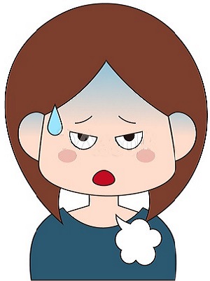・顔に汗をかく。