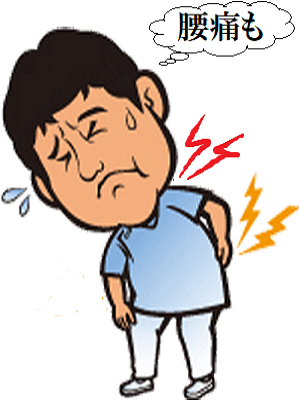 また、肩や背中の痛みや不快感が続くと、腰痛も起きます。