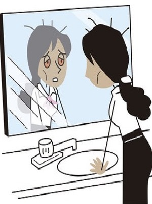 鏡に映った顔が、「ドッと疲れが出ている感じで、腫れぼったく」なって、「老けこんでいる…」と見えたり、「疲れて、不健康そう」で、「顔のシワが目立って、重苦しそうな印象」に見えたりするからです。